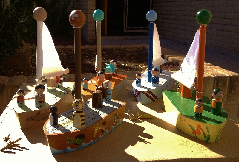 Toy sailboats make me wish I was a child. The woodworkers and painters of Green Valley, Arizona start creating these wonders in January for the pure joy of gifting them in December to our clinic children.