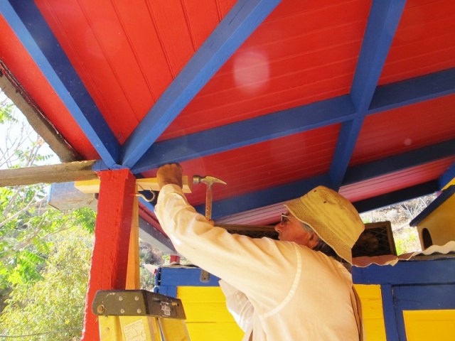 The wind was so strong this evening that besides blowing the orbs to the south it motivated me to make sure nothing would blow from our yard into the street.
