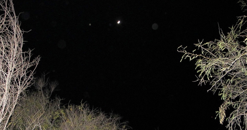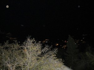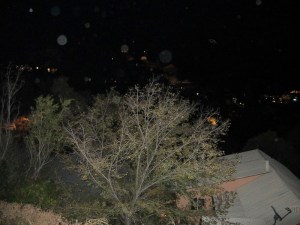 The bright center light is the moon, which is still less than a quarter full. So, this post is actually for those of you hunting orbs in the dark. Don’t be discouraged if you can’t perceive them immediately. They may not be revealed until you brighten the image and lessen the contrast, then the paler ones can be seen.